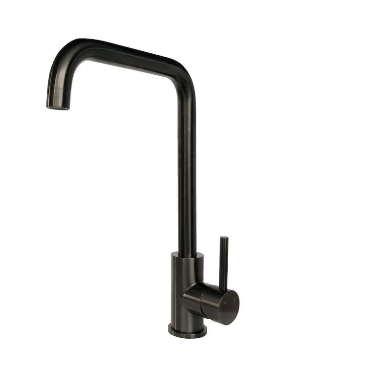 Doeco Ronde Gun Metal keukenkraan. Eenhendel mengkraan met keramisch binnenwerk.